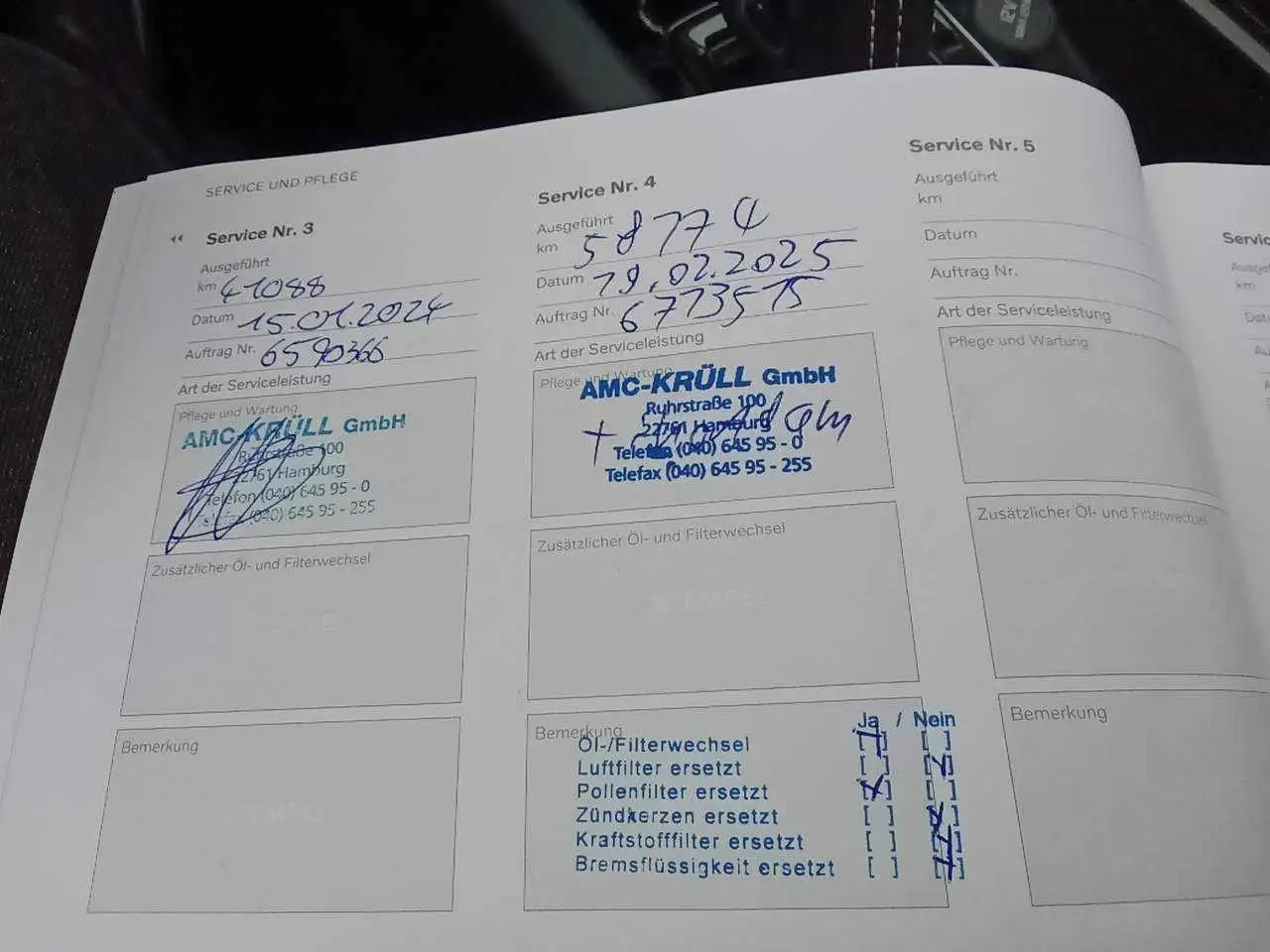 Servicehistorie: Ja